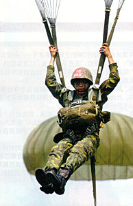 上午10時15分起,臺200多名空降兵在潮州鎮(zhèn)進行了代號“聯(lián)云”的空降演習,稍后,他們還會同從加祿堂趕來的登陸演練人員一道,與趕來的“守軍”展開了激戰(zhàn)……