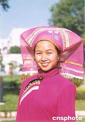 一九九二年六月至十月間,鄧小平以“一個(gè)老共產(chǎn)黨員”的名義,向中國希望工程捐款五千元人民幣,平果縣希望小學(xué)二十五位失學(xué)兒童幸運(yùn)受助。來自廣西百色市平果縣鳳梧鄉(xiāng)仕仁村巴雄屯的周標(biāo)亮由于家遭大火洗劫幸運(yùn)成為受助生。如今周標(biāo)亮已學(xué)有所成,回到母校任教。圖為穿著壯族服飾的周標(biāo)亮。作者:蔣雪林