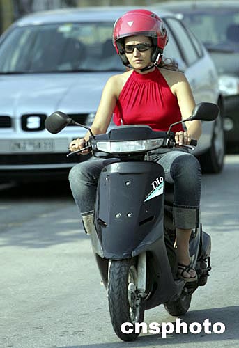 當地時間8月5日上午,一輪烈日又將雅典帶入一個高溫天氣,一名紅裝摩托女郎從汽車大軍中急速駛過。雅典市有不少時尚男女,熱衷駕駛摩托車。中新社記者:任晨鳴