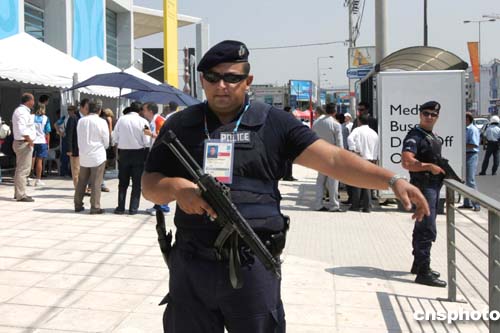 當(dāng)?shù)貢r(shí)間8月6日下午,雅典奧運(yùn)會(huì)的所有場(chǎng)館均提高了安保防范等級(jí),在原有的警察防線外增加了荷槍實(shí)彈的軍警,以防恐怖襲擊。中新社記者:任晨鳴