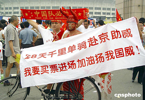 走在沮喪球迷的隊(duì)伍中,心情難免不好。這時(shí)從對(duì)面跌跌撞撞地走來一位年輕的中國(guó)球迷,用沙啞的嗓音不停地唱著《歌唱祖國(guó)》?吹贸觯苍S是失敗的打擊太大,他已經(jīng)有些神志不清了,身邊的女友眼含淚水,默默地陪在他身邊。許多經(jīng)過的女球迷也已經(jīng)眼眶濕潤(rùn)。