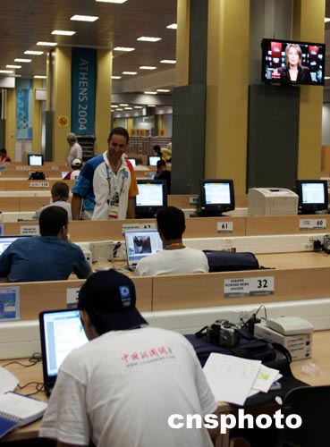 (當(dāng)?shù)貢r間)二○○四年八月八日,眾多中外記者進(jìn)入希臘雅典奧運會新聞中心開始工作。中新社記者:毛建軍