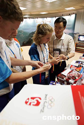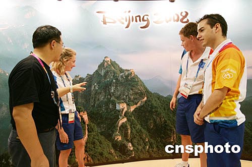 (當(dāng)?shù)貢r(shí)間)二○○四年八月八日,2008北京奧運(yùn)會(huì)組委會(huì)在希臘雅典奧運(yùn)會(huì)新聞中心設(shè)立展臺(tái),宣傳北京奧運(yùn)以及新北京的面貌。中新社記者:毛建軍