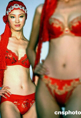 近日在北京舉行的旨在展示中國(guó)當(dāng)?shù)貎?nèi)衣發(fā)展趨勢(shì)的時(shí)裝秀上,T型臺(tái)上盡現(xiàn)東方嫵媚新視點(diǎn)。