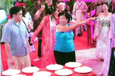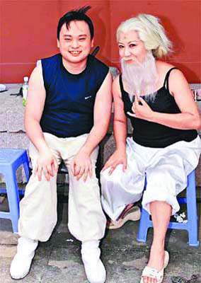 對(duì)于自己這個(gè)白衣長老的造型,薛家燕說:“本來不用粘這些胡子的,但我覺得粘上去會(huì)逼真很多,而且效果也很明顯,不過粘了上去以后你會(huì)覺得很辛苦,特別是這么熱的天氣!彪m然只是合作了幾天,但薛家燕對(duì)孔慶翔依然是贊不絕口,“他雖然是新人,但是我覺得他的演出已經(jīng)是很專業(yè)和投入,他很努力,每天的對(duì)白都背得很熟。其實(shí)在這部電影里,我們不需要他有特別的演出,只要做本能的演出就可以了,例如你們剛才看到的,召喚飛鳥來救我他只需在旁邊鼓掌就行了,而那些動(dòng)作武打戲份就讓我和恬妞去分擔(dān),我希望大家可以給點(diǎn)時(shí)間讓他去磨練!毖已鄬(duì)他的演出打了一個(gè)80分,欠缺的20分她認(rèn)為應(yīng)該是外界看了這部片以后給的。