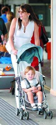 當(dāng)天穿著一身白色背心長褲、戴著太陽墨鏡的赫莉,推著坐在BB車上的兩歲大兒子戴米恩(Damian),現(xiàn)身倫敦希斯路機(jī)場,準(zhǔn)備飛往法國南部度假。赫莉心情非常好,她平日也會遮著兒子的臉,但前日卻大方地讓記者隨便拍照。而戴米恩面對大批記者的出現(xiàn)也十分鎮(zhèn)定,沒有把他嚇哭,果然是吃這行飯的后人。
