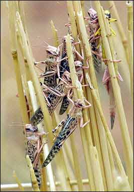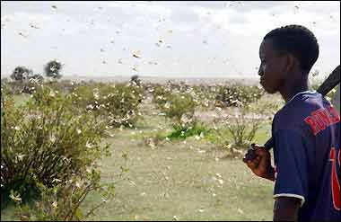 目前這一地區(qū)現(xiàn)在面臨著15年來最為嚴(yán)重的一次蝗災(zāi),大批的沙漠蝗蟲正從西北非侵襲毛利塔尼亞,馬里以及尼日利亞,在這一地區(qū),很多都是依靠農(nóng)業(yè)生活的人;葹(zāi)爆發(fā)時(shí),一群群的蝗蟲鋪天蓋地,烏云蔽日般東奔西撞,它們所到之處,各種綠色植物均遭暴殄,慘不忍睹。1988年,非洲的塞內(nèi)加爾和毛里塔尼亞境內(nèi),發(fā)生了數(shù)十年罕見的蝗災(zāi),僅一群蝗蟲就可達(dá)1000億只以上。