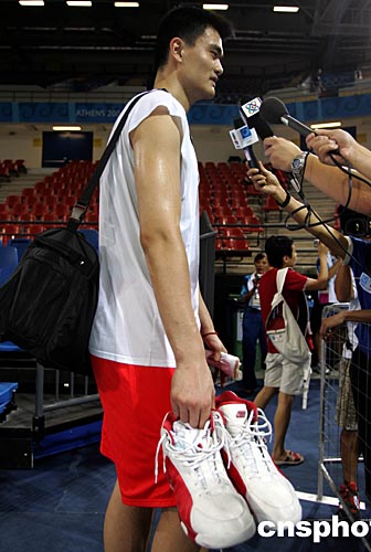 當(dāng)?shù)貢r(shí)間八月十二日下午,剛剛抵達(dá)雅典的中國男籃在郊外奧運(yùn)會籃球館參加訓(xùn)練。