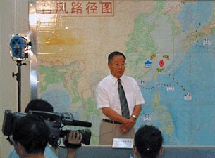 遵照總理要確保人民生命財產(chǎn)安全的指示,根據(jù)云娜臺風(fēng)的特點(diǎn)及動向,中國氣象局于8月12日采取緊急行動,中國氣象局局長秦大河決定利用中央電視臺《新聞聯(lián)播》之后的電視天氣預(yù)報節(jié)目時段,親自向廣大民眾播報云娜臺風(fēng)的登陸信息。