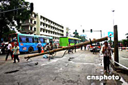 八月十三日下午,廣西首府南寧市遭暴風雨襲擊,電桿被折斷引發(fā)南寧市中華路居民區(qū)大面積停電。作者:蔣雪林