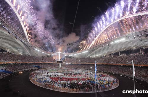當(dāng)?shù)貢r(shí)間8月13日晚,第二十八屆奧運(yùn)會(huì)在希臘雅典開幕。中新社記者:毛建軍