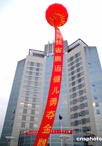 在八月十四日下午結(jié)束的雅典奧運(yùn)會女子十米氣步槍決賽中,山東女射擊運(yùn)動員杜麗奪得本屆奧運(yùn)會首枚金牌。杜麗的母校山東省競技體育運(yùn)動學(xué)校的師生扎制彩車在濟(jì)南街頭游行慶祝。作者:宋衛(wèi)東