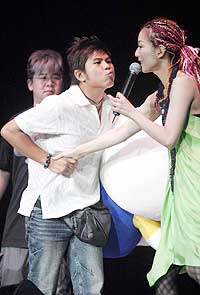 唱完一曲后,男歌迷“五金”竟欲一把抱走獎(jiǎng)品Hello Kitty的布娃娃,鄭秀文還來(lái)不及阻止,他又捉住鄭秀文的手,并嘟起嘴要吻鄭秀文說(shuō):“你就給我Hello Kitty吧,雖然我唱得沒(méi)安仔(許志安)好!毙液肧ammi眼明手快擋開(kāi)對(duì)方,才沒(méi)有被揩油,當(dāng)時(shí)鄭秀文大聲說(shuō)著:“下臺(tái)!下臺(tái)!要Hello Kitty就拿去吧,這燈你也拆走吧!”