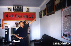 鄧小平百年誕辰前夕,鄧小平的農(nóng)民表弟淡文全特意在四川廣安的家中布置一個簡易展示板供游人參觀。圖為淡文全在介紹有關(guān)情況。中新社記者:肖龍聯(lián)