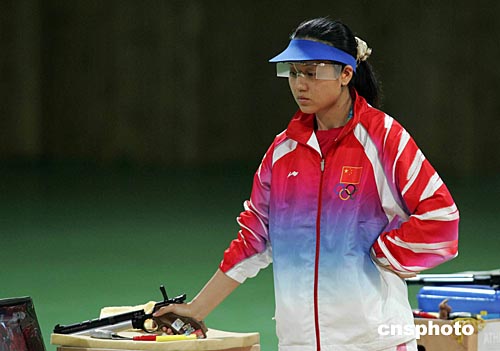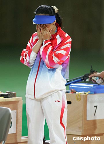 當(dāng)?shù)貢r(shí)間八月十五日上午,在雅典舉行的第二十八屆奧運(yùn)會(huì)射擊女子十米氣手槍決賽中,中國隊(duì)選手任潔沖擊金牌未果,以四百八十二點(diǎn)三環(huán)的成績名列第四。中新社記者:毛建軍