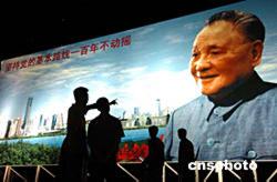 八月十五日晚,巨幅小平新畫像高高懸掛,新畫像偉人背后的背景是深圳新市容,展現(xiàn)特區(qū)深圳的新變化。在鄧小平誕辰百年之際,深圳市民更加懷念敬愛(ài)的小平。作者:陳文