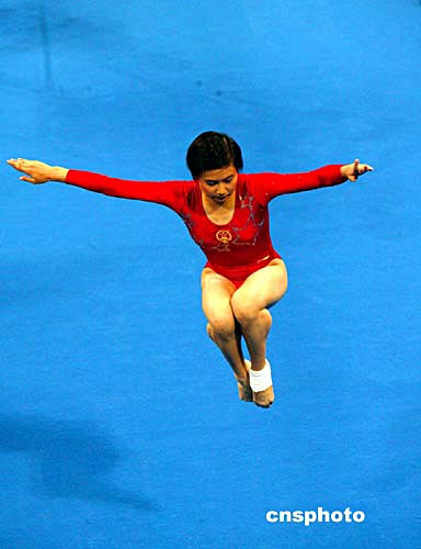 中國女子體操隊主力張楠在15日舉行的的雅典奧運會女子體操團體賽預(yù)賽中。中新社記者:王瑤