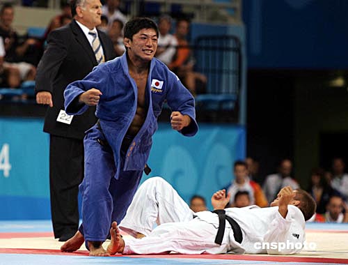 日本選手內柴正人于當?shù)貢r間八月十五日在雅典獲得第二十八屆奧運會男子六十六公斤級柔道比賽冠軍。中新社記者:毛建軍