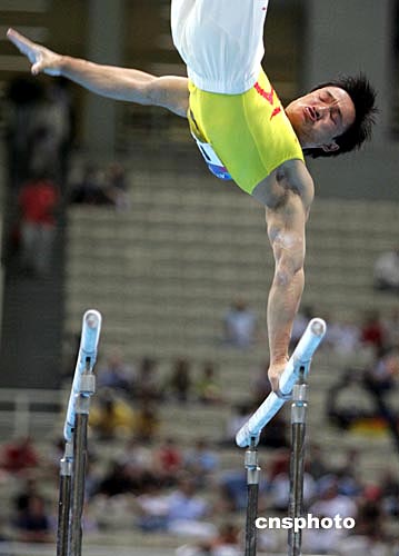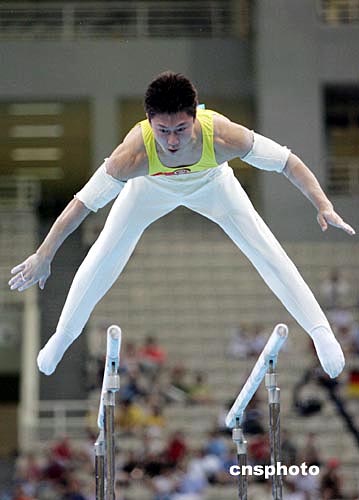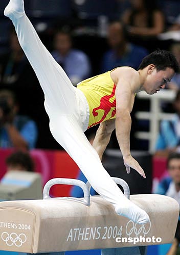 當(dāng)?shù)貢r間八月十六日晚,雅典奧運男子體操團(tuán)體比賽在奧運體操比賽館舉行,中國隊衛(wèi)冕失利,僅獲得第五名。中新社記者:毛建軍