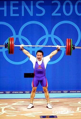 雅典當?shù)貢r間二00四年八月十六日,雅典奧運會男子舉重六十二公斤級比賽在雅典尼凱亞奧林匹克舉重館舉行,中國選手石智勇和樂茂盛包攬金銀牌。作者:新體