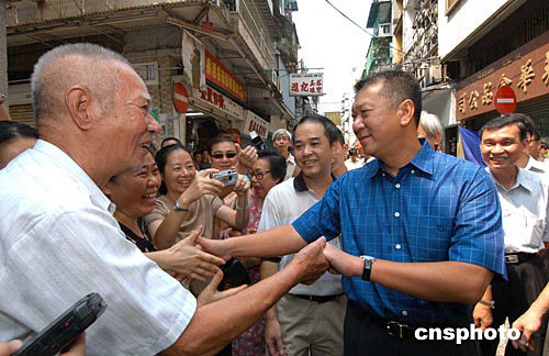 十七日上午,澳門特別行政區(qū)第二任行政長官候選人何厚鏵繼續(xù)展開了為期二周的競選宣傳活動,在十月初五街何厚鏵與街坊們熱情握手,感謝他們的支持。作者:梁永強