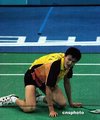 在另外一場比賽中,陳宏以二比一戰(zhàn)勝馬來西亞新秀李宗偉,為中國男單保存著最后一線希望,三局的比分是:十五比十一、三比十五和十五比十二。
