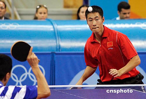 當(dāng)?shù)貢r(shí)間18日晚,中國(guó)乒乓球男單選手王勵(lì)勤戰(zhàn)勝韓國(guó)選手,晉級(jí)8強(qiáng)。中新社記者:張煒