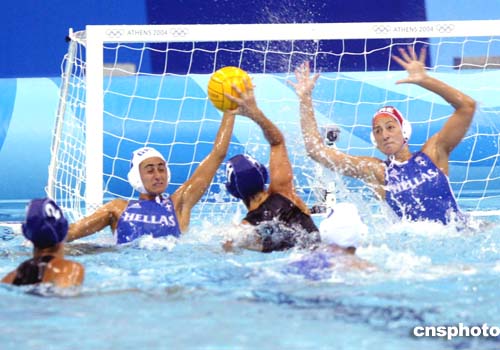 雅典奧運(yùn)會(huì)女子水球預(yù)賽A組第八場(chǎng)比賽:希臘VS意大利。作者:IN TIME SPORTS