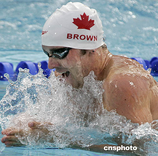 圖為在當?shù)貢r間8月18日舉行的男子200米仰泳和蛙泳的比賽中,加拿大選手的出色表現(xiàn)。