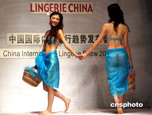 八月十九日,黛安芬、歐迪芬等世界多家知名內(nèi)衣品牌在北京舉行2005春夏中國(guó)內(nèi)衣流行趨勢(shì)發(fā)布會(huì),模特通過(guò)六個(gè)主題從色彩和風(fēng)格方面詮釋未來(lái)內(nèi)衣形象。中新社記者:王麗南