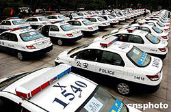 一月五日上午,富力地產(chǎn)集團(tuán)向廣州見義勇為基金會(huì)贈(zèng)送百輛巡邏警車儀式在中山紀(jì)念堂廣場舉行。圖為百輛巡邏警車大展示。作者:陳文