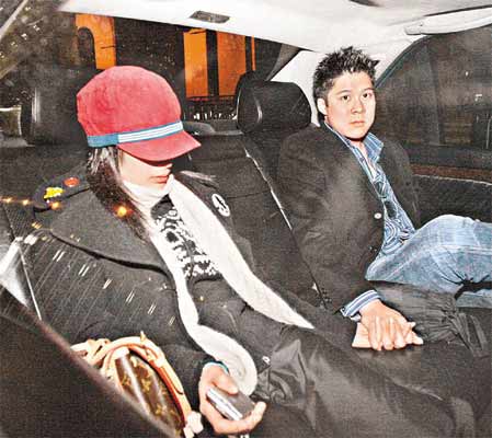 約六時十五分,二人從發(fā)型屋后門離開,不過頭戴鴨舌帽的郭晶晶赫然發(fā)覺有記者在后門守候,仿徨不知所措,隨即慣性地低下頭,不斷問男友:“怎么辦?”由于一直垂頭兼肯正面示人,進退兩難的郭晶晶又再向男友求救:“我看不到路。”在旁的霍啟剛隨即拉著女友,二人十指緊扣,直至上車都沒有放開手。