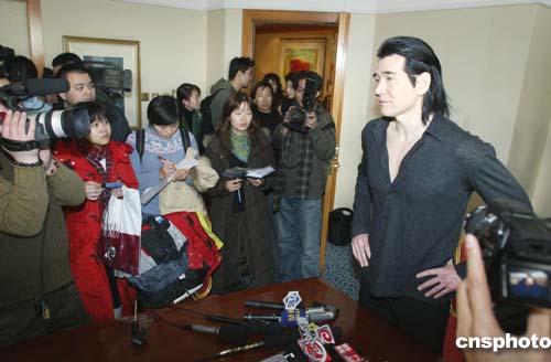 今次專程從臺(tái)灣趕來北京的費(fèi)翔一襲黑衣黑褲,露到胸口的領(lǐng)口不失性感。在發(fā)布會(huì)上他一再表示,今日只談被誤解的“胸毛賑災(zāi)”一事,其余話題一概不回答。而記者看到,在發(fā)布會(huì)全程不管問他新專輯還是將來的工作計(jì)劃,他都婉轉(zhuǎn)地予以回絕。