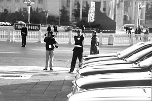 張景龍等下午3時(shí)多便到了人民大會(huì)堂北門。他說,一般情況下,特勤民警要提前1小時(shí)到,特殊情況下,甚至可能提前24小時(shí)進(jìn)行現(xiàn)場(chǎng)控制。