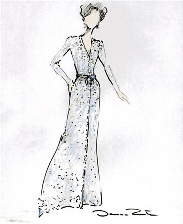 白宮提前公布了總統(tǒng)夫人與女兒當(dāng)日出席布什就職典禮時(shí)所穿的禮服草圖。