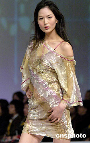 1月19日,香港會(huì)展中心舉行“香港時(shí)裝節(jié)秋冬系列2005”,模特在T型舞臺(tái)演繹“獨(dú)家時(shí)裝表演”專場(chǎng)設(shè)計(jì)師最新服飾系列。作者:洪少葵