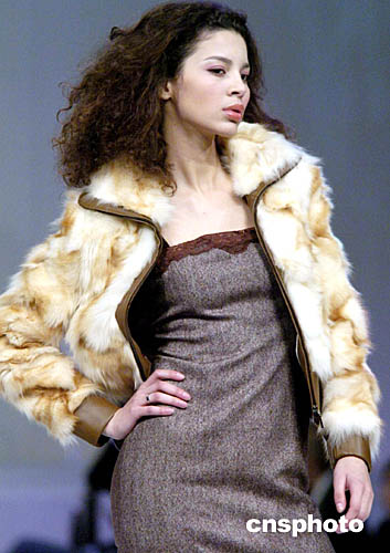 1月19日,香港會展中心舉行的“香港時裝節(jié)秋冬系列2005”上,模特展示“獨家時裝表演”專場皮草秋冬系列。作者: 洪少葵