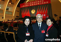 一月二十一日,上海市政協(xié)十屆三次會議圓滿完成各項議程并舉行閉幕儀式。圖為香港的上海政協(xié)委員譚茀蕓(左)與葉公琦(中)、何靜芝在一起。作者:潘索菲