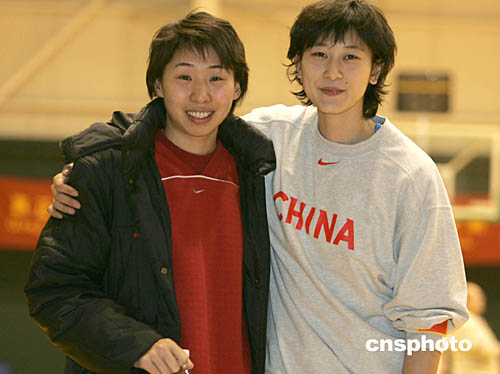 中國女籃主力前鋒隋菲菲(右)、得分后衛(wèi)苗立杰,1月22日在北京國家籃球訓(xùn)練基地隨隊訓(xùn)練。