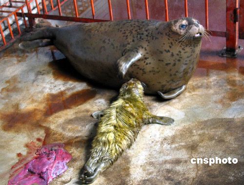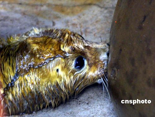 2005年1月24日早晨,在秦皇島海洋歡樂(lè)公園的水族館內(nèi),一只出生僅一天的小斑海豹全身覆蓋著土黃色的皮毛,在媽媽的產(chǎn)房?jī)?nèi)享受著母愛(ài)。據(jù)了解,這只可愛(ài)的小海豹在秦皇島市是人工喂養(yǎng)條件下降生的第一只小海豹,它的媽媽名叫“公主”,是6年前來(lái)到港城的,經(jīng)過(guò)幾年的人工喂養(yǎng),2004年10月份訓(xùn)養(yǎng)員發(fā)現(xiàn)溫順的公主懷孕了,在為其安排了一間單獨(dú)的產(chǎn)房后,1月23日早晨4點(diǎn)左右時(shí),工作人員聽(tīng)到公主奇特的叫聲,5點(diǎn)多時(shí),發(fā)現(xiàn)公主身邊多了一只小海豹和一堆胎盤。斑海豹別名海豹、港海豹,海豹科Phocidae,分布主要在渤海、黃海、東海也有發(fā)現,個(gè)別遠(yuǎn)達(dá)南海,屬國(guó)家二級(jí)保護(hù)動(dòng)物。也是惟一在我國(guó)渤海沿岸繁殖的鰭腳類動(dòng)物。學(xué)忠 攝