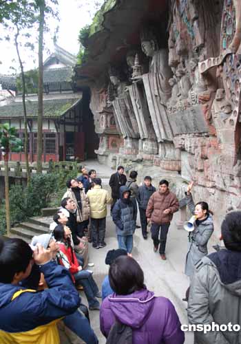 圖:臺(tái)灣大學(xué)生參觀世界文化遺產(chǎn)大足石刻