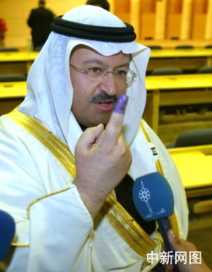 圖:伊臨時(shí)政府總統(tǒng)亞瓦爾在巴格達(dá)參加投票