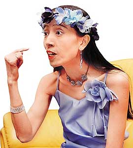好一陣子沒上通告的許純美雖然最近造型越來越多變,但阿美姊重排場的個(gè)性仍然與過去沒兩樣,在參加某一節(jié)目錄像時(shí),她事先特別叮囑主持人NONO,在邀請她上臺時(shí)要隆重介紹才行,就像是歡迎奧斯卡影后一般,結(jié)果當(dāng)NONO還在說:“我們今天的特別來賓是個(gè)了不起的人物...”阿美姊自己就如名模走秀般扭上臺,不讓小S與劉真專美于前,還拉起NONO的手現(xiàn)場跳了一段恰恰,舞姿就像是她的招牌拍照pose一樣驚人。