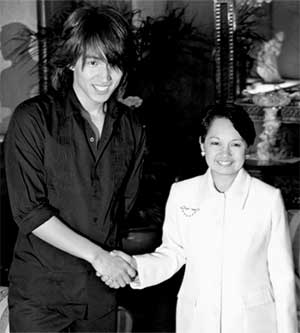 菲律賓媒體當(dāng)時(shí)報(bào)道稱,言承旭旋風(fēng)是在菲律賓進(jìn)行兩天一夜的宣傳行程中刮起的,拜《流星花園》所賜,他在當(dāng)?shù)氐闹群芨,連總統(tǒng)阿羅約也邀約與他會(huì)面。阿羅約坦言,她看過(guò)《流星花園》,對(duì)言承旭能來(lái)菲律賓感到十分開(kāi)心與歡迎,并稱贊他長(zhǎng)得很英俊,比電視里還好看。言承旭有些不好意思,以流利的英文感謝總統(tǒng)的支持,也表達(dá)了對(duì)她的敬佩。