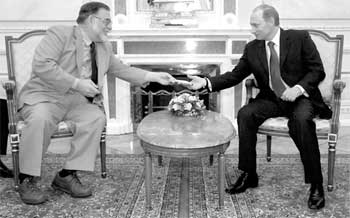 獲得如此贊譽(yù)的科波拉自然也懂得“禮尚往來(lái)”的道理,他微笑著贊美了普京總統(tǒng)在蘇聯(lián)軍隊(duì)解放奧斯威辛集中營(yíng)60周年典禮上的講話。普京在這次講話中表示,他為俄羅斯現(xiàn)存的反猶主義感到“恥辱”!白吭降陌l(fā)言”,科波拉說(shuō),“但是你看上去比電視里更年輕。”作為從遙遠(yuǎn)國(guó)度帶來(lái)的珍貴禮物,科波拉還贈(zèng)送給普京總統(tǒng)一張《迷失東京》的DVD。這部由他女兒索菲婭·科波拉執(zhí)導(dǎo)的都市情感片,在去年的奧斯卡頒獎(jiǎng)典禮上獲得了最佳原著劇本的殊榮。科波拉驕傲地向普京總統(tǒng)表示,他和他的女兒都是在32歲的時(shí)候拿到第一尊小金人(出生于1939年的科波拉,在1971年憑《教父》第一集獲得最佳改編劇本),普京總統(tǒng)機(jī)智地回應(yīng)道:“看來(lái)你的孫女必須也做到這一點(diǎn)了!