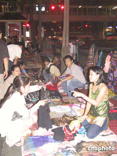 夜晚的曼谷則霓虹閃爍,一派歌舞升平景象。市中心五彩燈下的人行道上,擺滿(mǎn)了各式旅游商品,游人穿梭不息。在記者住宿的拉馬達(dá)街,晚上十二點(diǎn)多,“全家!睙敬笈艡n依然熱鬧。他們和附近的迪廳、酒吧等娛樂(lè)場(chǎng)所一樣,要“鬧”到第二天凌晨二時(shí)才會(huì)打烊。隔街的“七一一”連鎖便利店,二十四小時(shí)營(yíng)業(yè),不時(shí)有興致沖沖的購(gòu)物者推門(mén)而入。