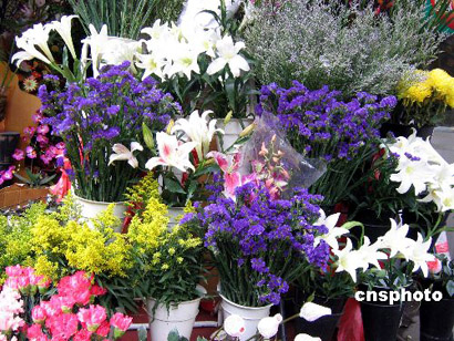 圖:情人節(jié)鮮花市場準(zhǔn)備充足