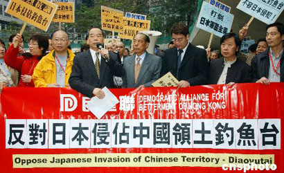 中新社香港二月十四日電 香港民主建港聯(lián)盟約五十名成員,十四日游行到日本駐港總領(lǐng)事館遞交抗議信,抗議日本政府日前片面宣布接管釣魚島上由右翼團體設(shè)立的燈塔,并作為日本的“國家財產(chǎn)”予以保護。