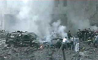 英國(guó)《獨(dú)立報(bào)》的記者費(fèi)思克告訴美國(guó)有線電視新聞網(wǎng):“現(xiàn)場(chǎng)非常血腥。我看到車內(nèi)有數(shù)具正在燃燒的尸體。爆炸留下的彈坑約有5米深,所以這是一枚大炸彈。至少有22輛小車仍在燃燒,其中一輛車被炸到三層樓那么高的地方。另一輛車看起來(lái)被炸到圣喬治賓館墻外面去了。在街對(duì)面,水正從破裂的水管中涌出。當(dāng)消防隊(duì)員到達(dá)現(xiàn)場(chǎng)時(shí),他們不得不將消防水管拖過(guò)遇難者的尸體以撲滅大火!
