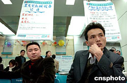 中新網(wǎng)2月17日電 金羊網(wǎng)—新快報報道,春節(jié)過后,廣州市首場人才招聘會再次出現(xiàn)火爆場面。記者昨天從南方人才市場舉行的大型綜合招聘會上獲悉,昨日一天就有8000多人到南方人才市場求職,其中應(yīng)屆畢業(yè)生成了主角。另外,從昨天開始至下月27日,廣州市將連續(xù)39天舉行招聘會。